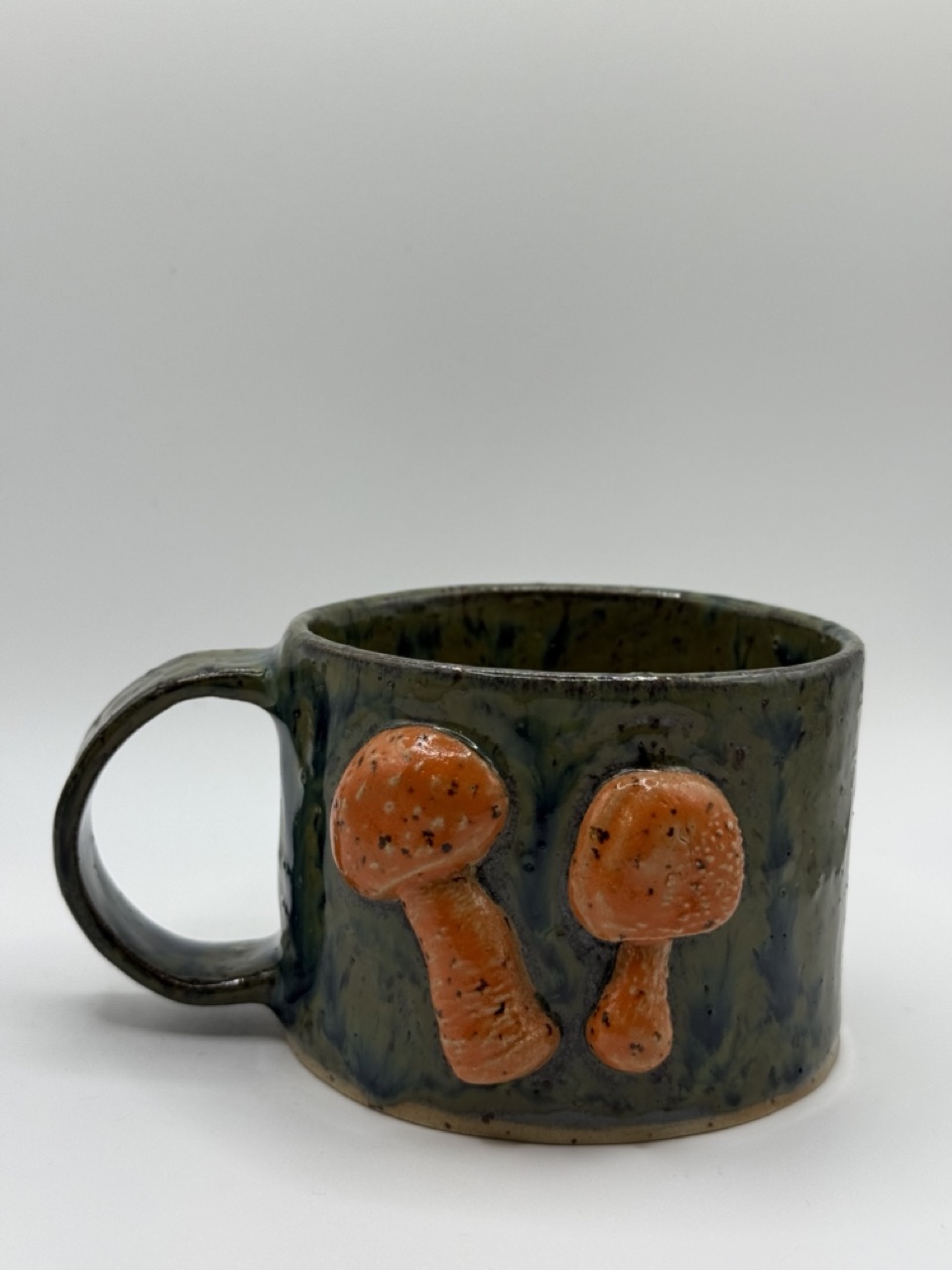 Szkliwo posiada atest spożywczy. Posiada takie płaskorzeźby grzyba na boku kubka.