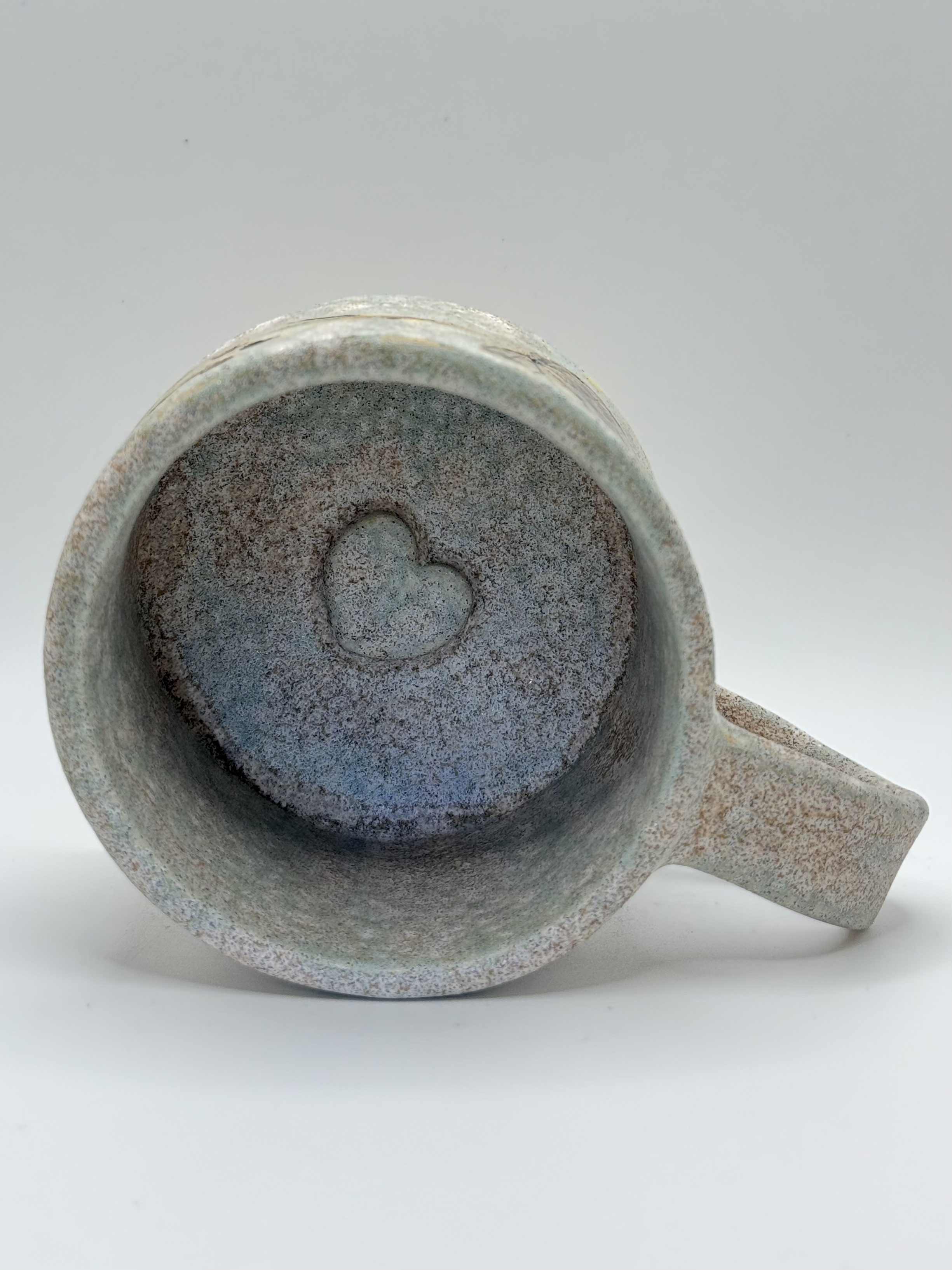 Na jego uchu siedzi symboliczny ptak – umiejscowiony tam nieprzypadkowo! Chwytając za kubek, nasz kciuk ląduje tam automatycznie. Taki wypukły dodatek dodaje niesamowitej wygodny – to trzeba po prostu poczuć by zrozumieć! Wewnątrz serduszko.